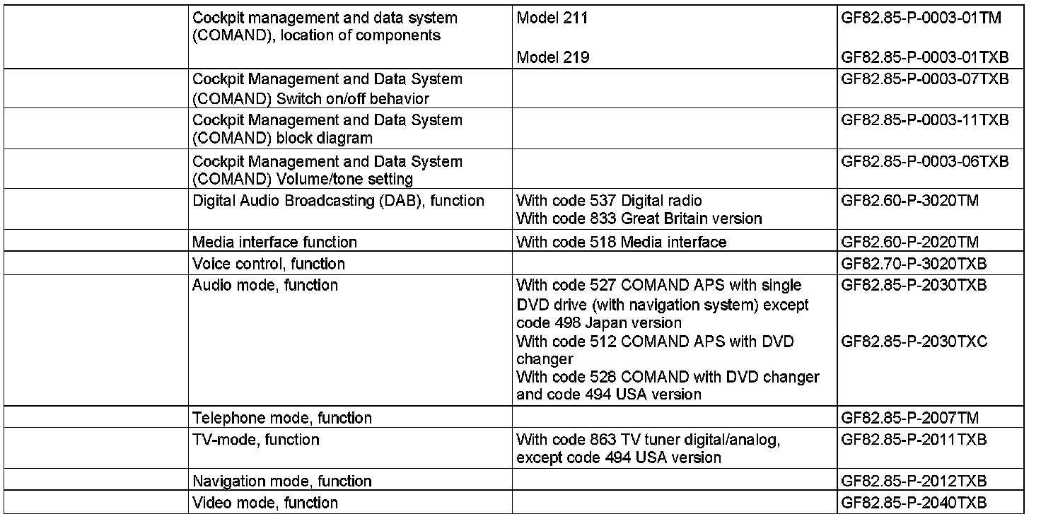 - Navigation, with code 512 COMAND APS including DVD changer, or with code 527 COMAND APS with single DVD drive (with navigation system)