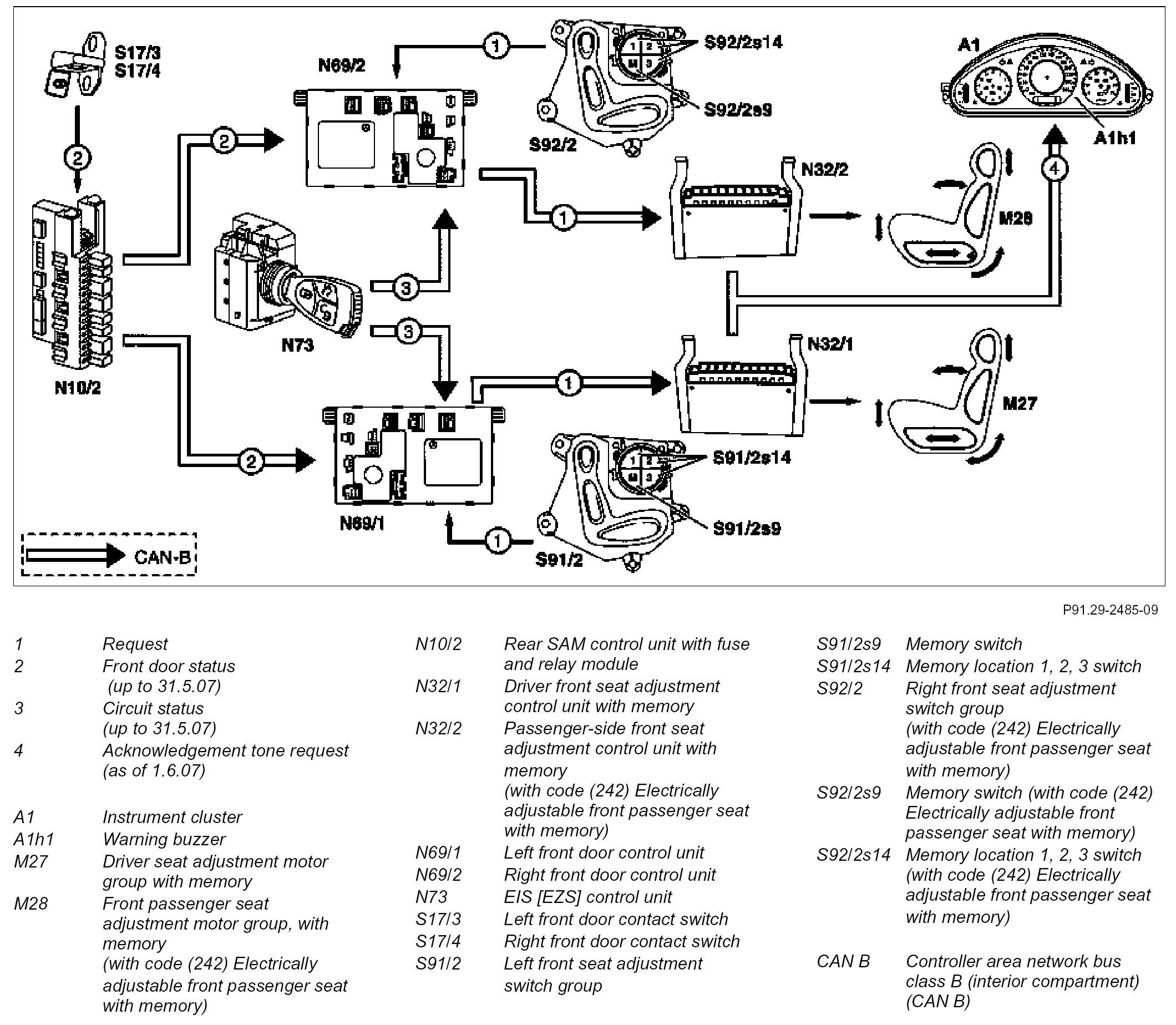For vehicles as of 1.6.07 acoustic feedback is provided by the warning buzzer that is integrated in the instrument cluster when the seat position is stored.