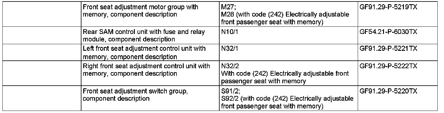 - with CODE (242) Electrically adjustable front passenger seat with memory