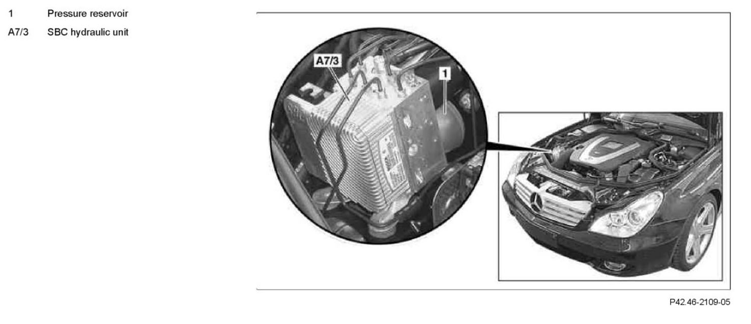 AR42.46-P-0011TX Remove/install pressure reservoir for Sensotronic Brake Control (SBC) hydraulic Unit
