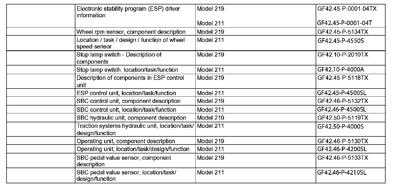 The ESP control unit (N47-5) detects the brake application from the SBC control unit via signals (SBC pedal value sensor, wheel speeds, brake pressure)