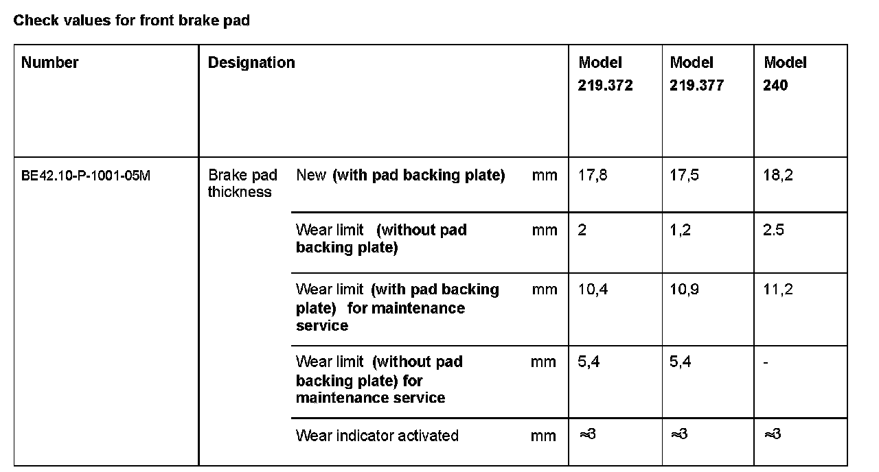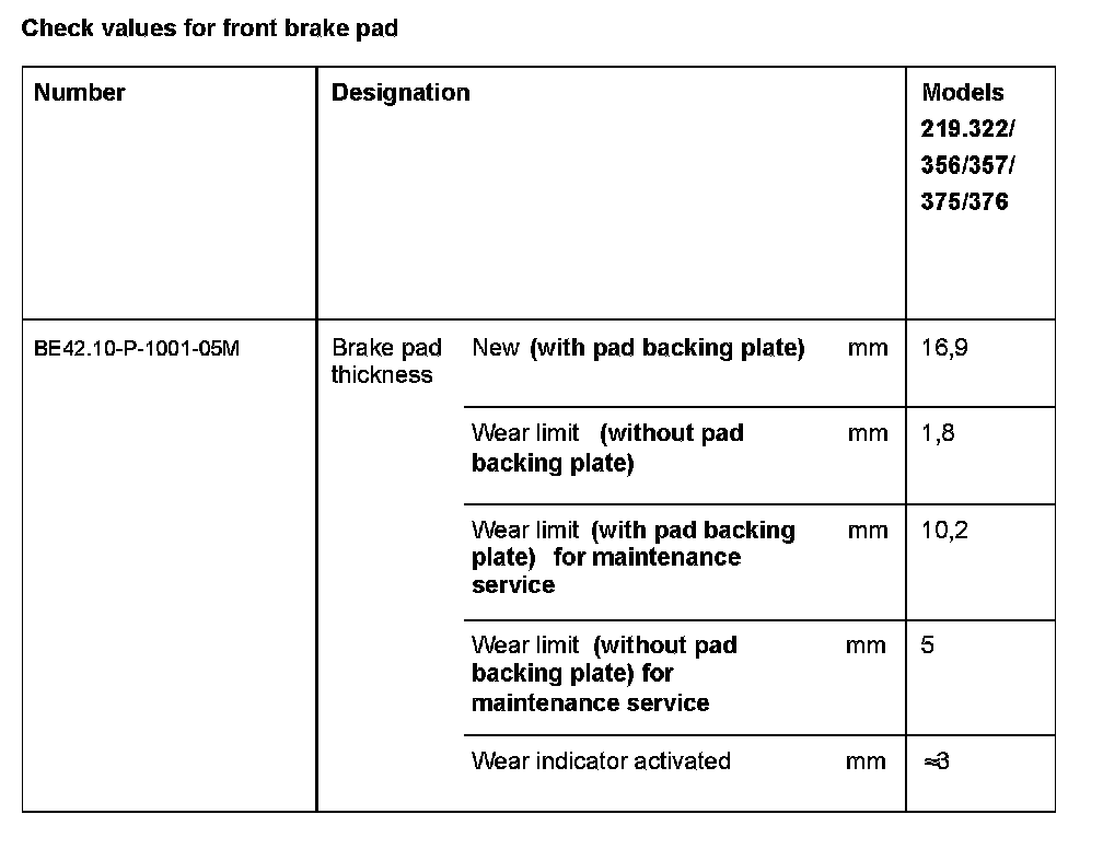 BE42.10-P-1000-05M Check Values For Front Brake Pad