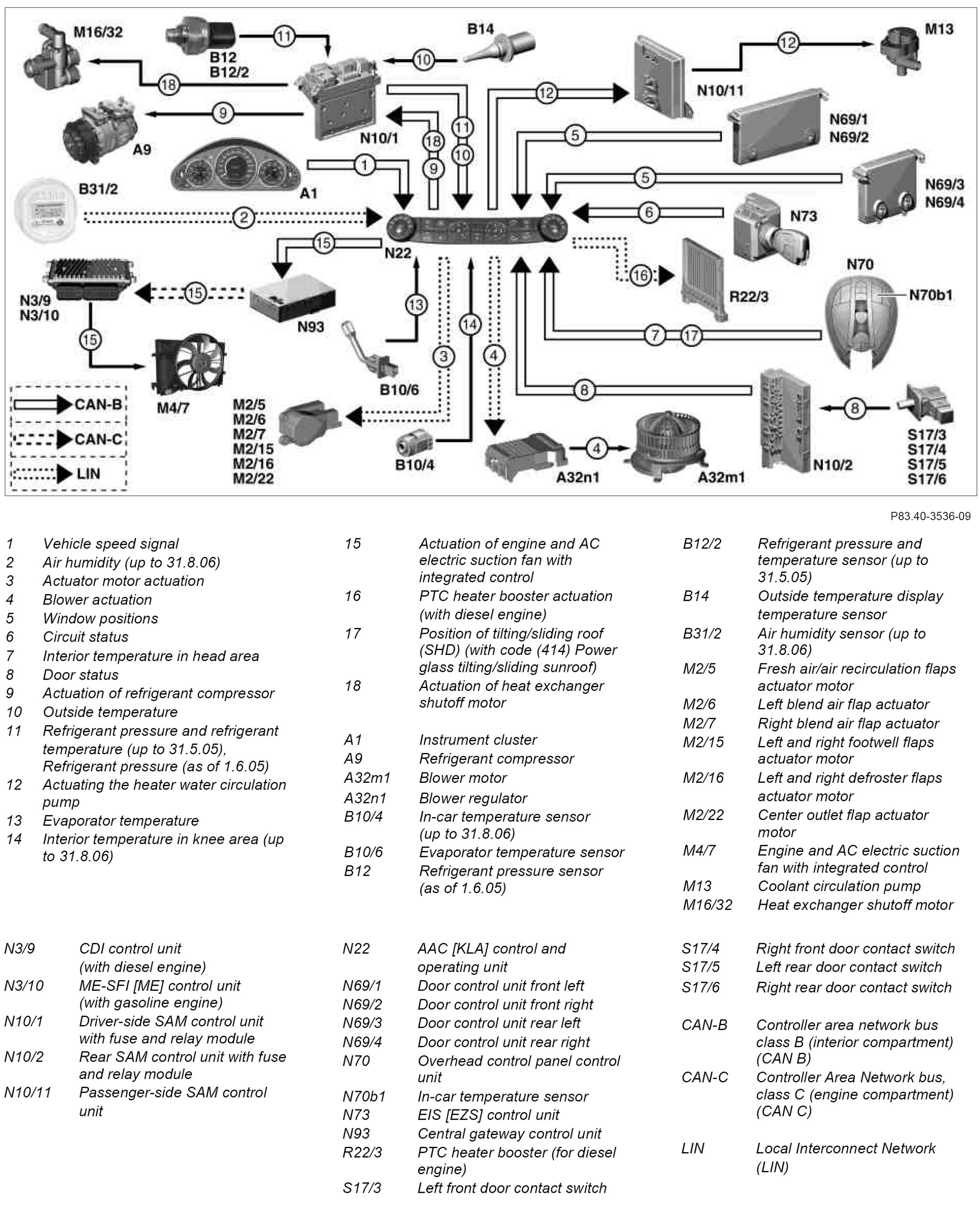 The AAC [KLA] control and operating unit receives the following information to regulate the automatic air conditioning: