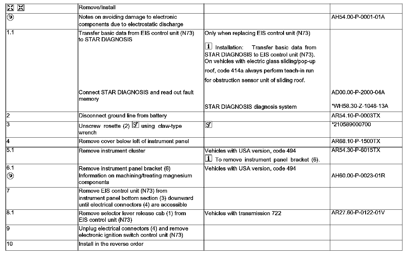 AR80.57-P-1000TX Remove/Install Electronic Ignition Switch Control Unit