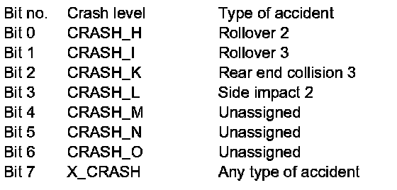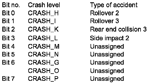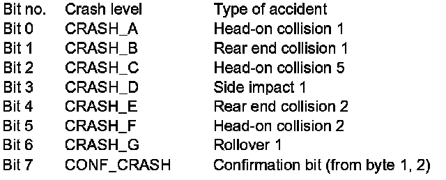 The emergency call system control unit (N123/4) receives the following list of messages via a direct digital crash signal from the restraint systems control unit (N2/7) and also (redundant) via the diagnosis bus from the central gateway control unit (N93). The central gateway control unit receives the message from the restraint systems control unit via the Controller Area Network bus class B (interior) (CAN-B):