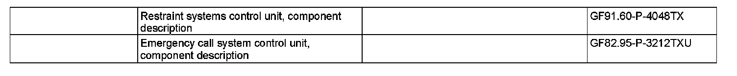 GF82.95-P-3005TXU Restraint System Control Unit Data, Function