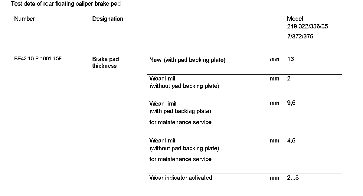 BE42.10-P-1000-15F Test Data of Rear Floating Caliper Brake Pad