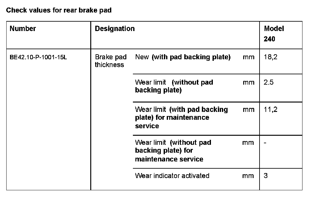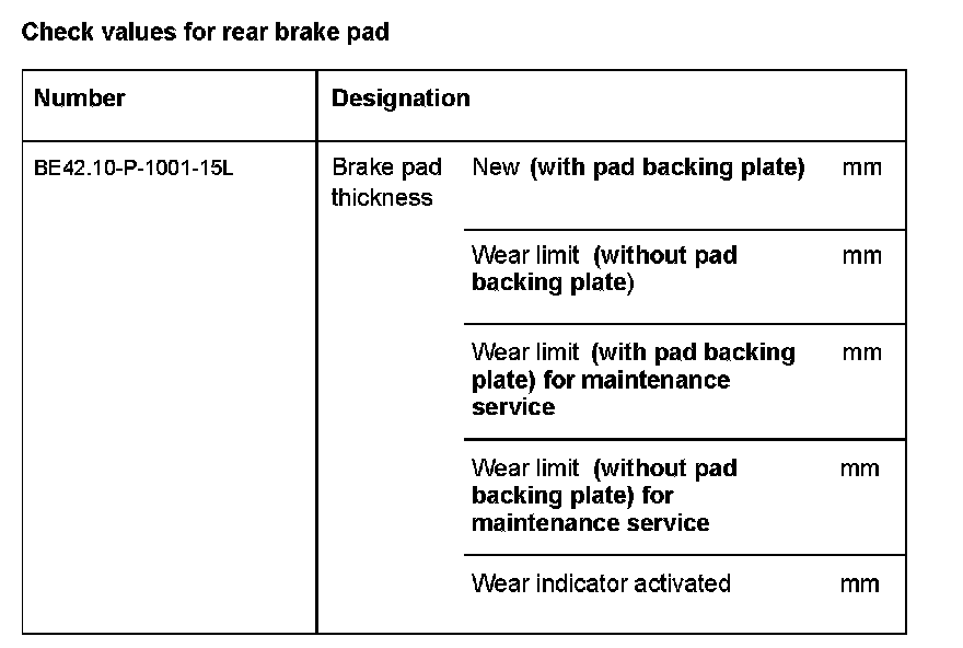BE42.10-P-1000-15L Check Values For Rear Brake Pad