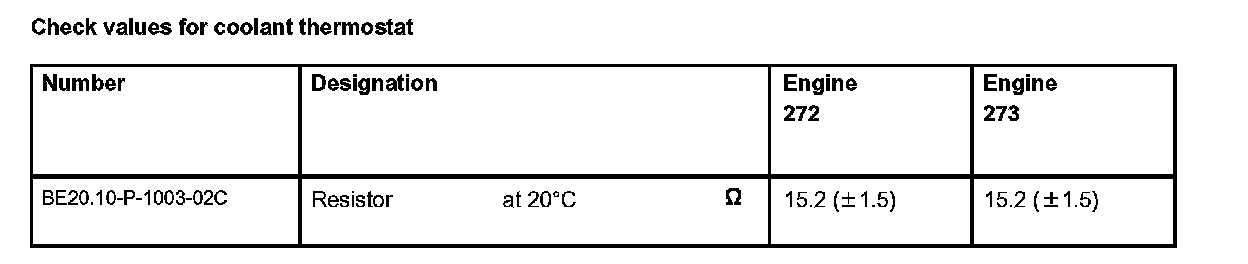 Check values for coolant thermostat: