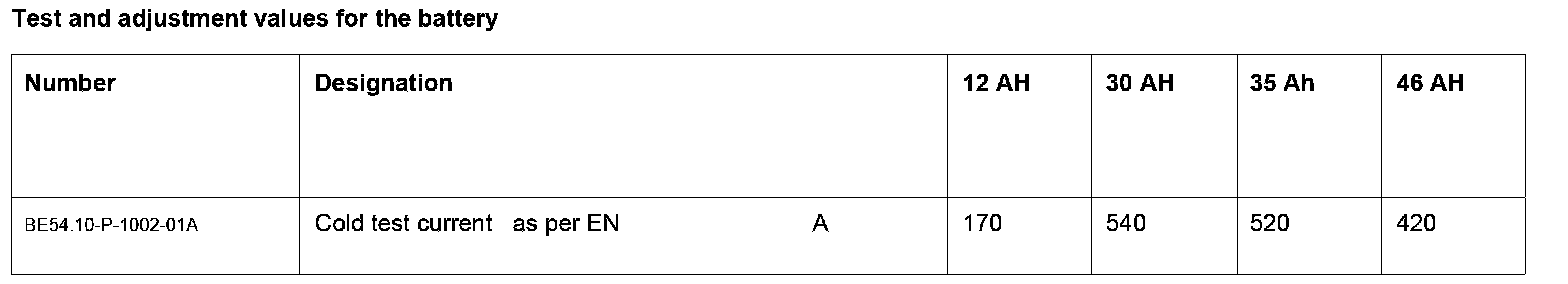 Test And Adjustment Values For The Battery: