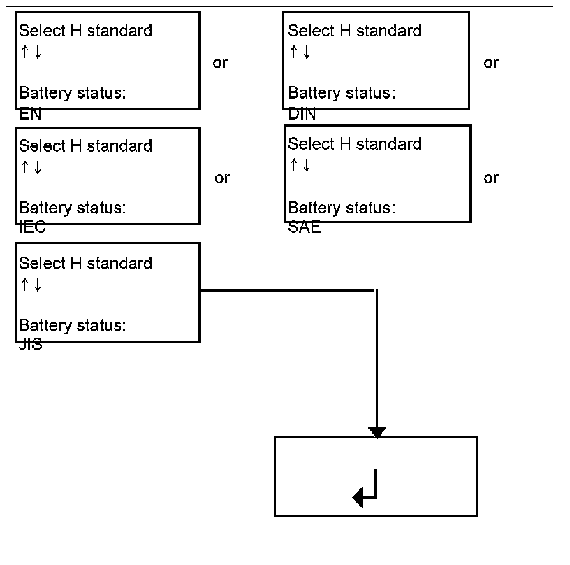 5. Follow the menu selection and select the test standard for the cold cranking amps.