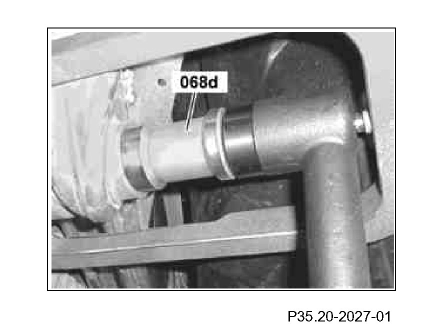 11 Press rubber mount into rear axle carrier until the thrust piece (068g) lies against the rear axle carrier (arrow).