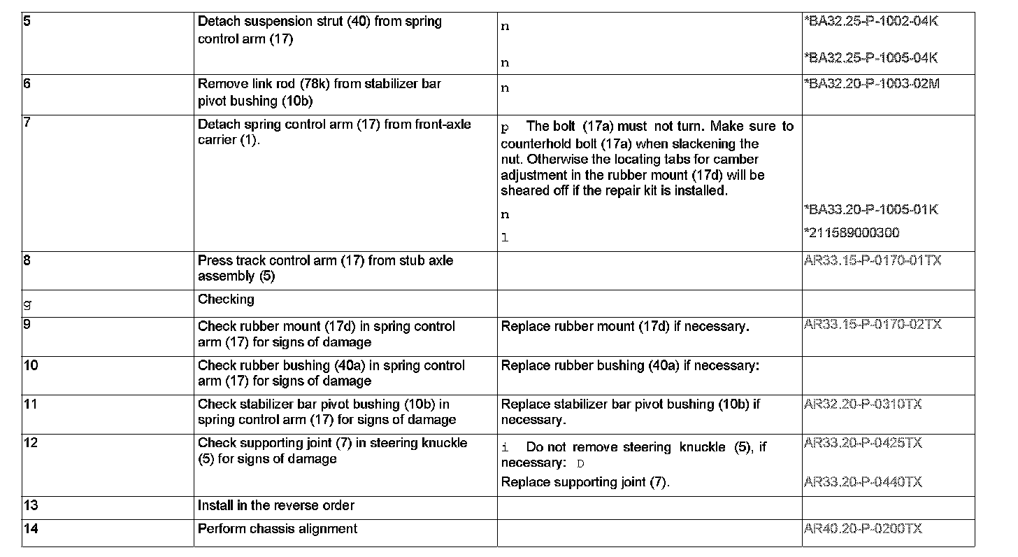 AR33.15-P-0170TX Remove/install spring control arm on front axleComponent Identification: