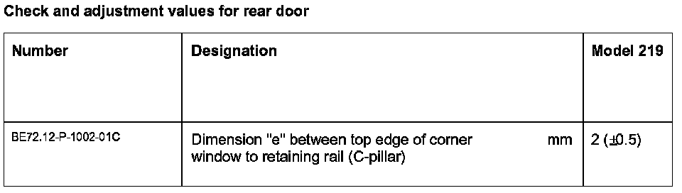 Check And Adjustment Values For Rear Door: