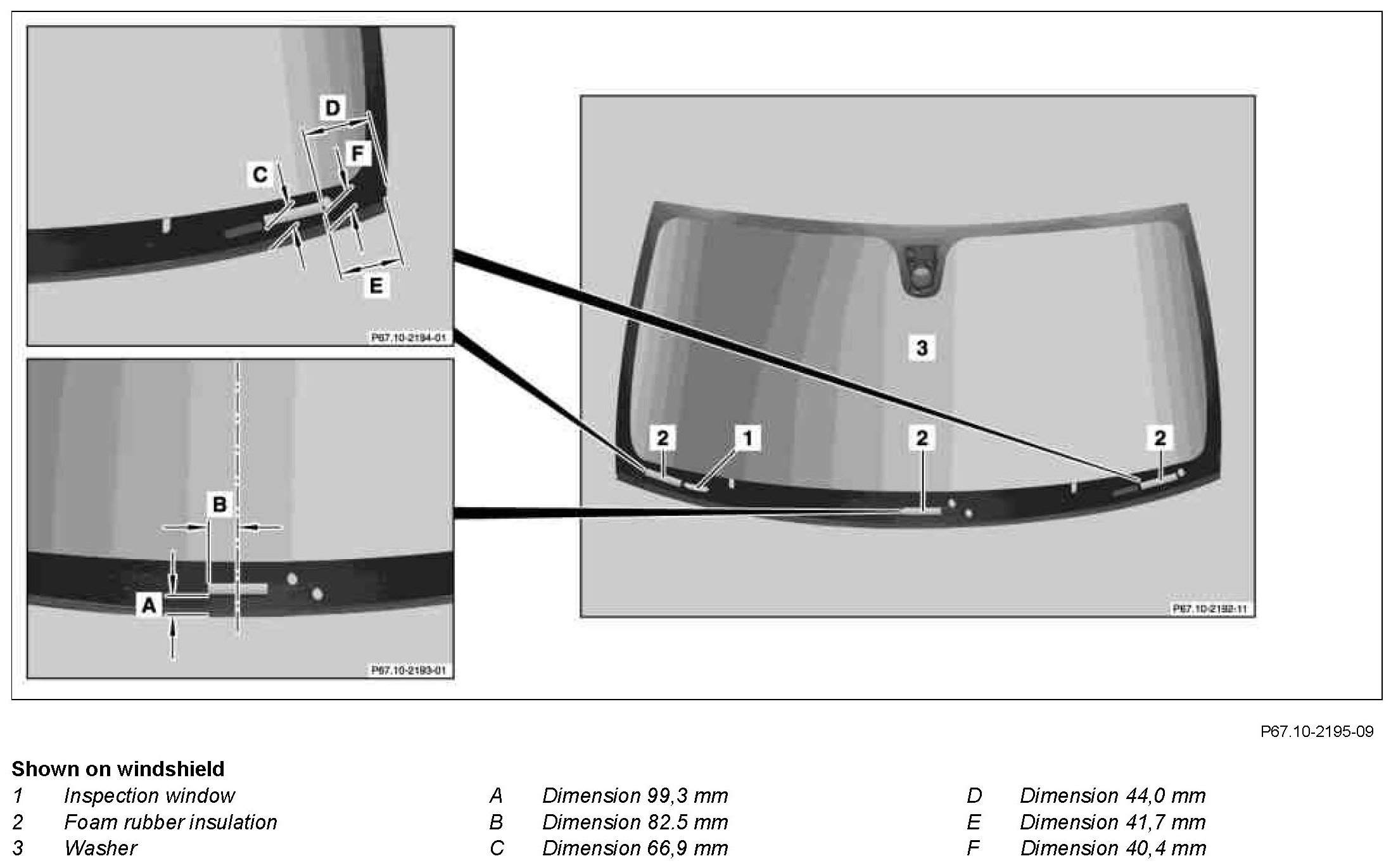 Replacement parts for windshields are generally delivered with a viewing window (1) at the bottom left. If the inspection window (1) is not required, always coat this area on the inside with Betaprime from the 1- or 2-component repair kit before installing window.