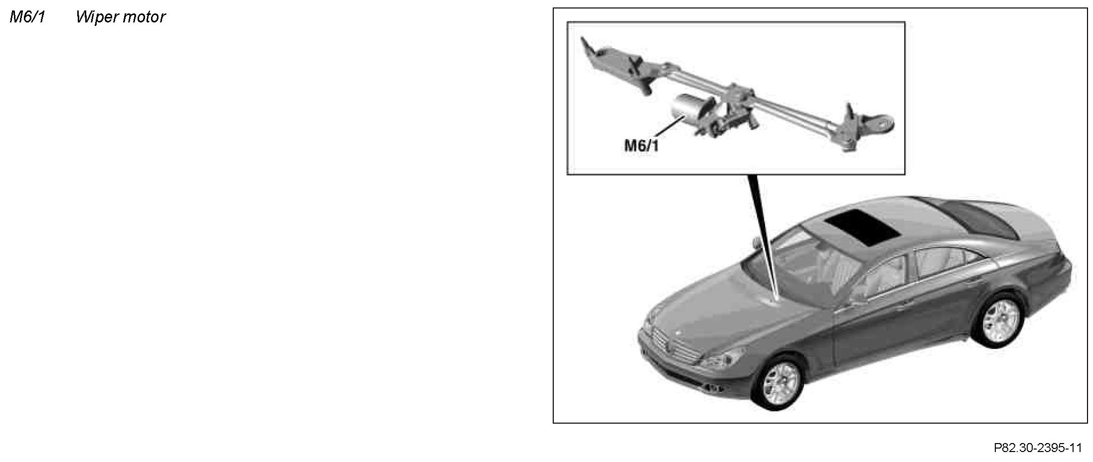 The wiper motor is located in the rear in the engine compartment below the windshield.