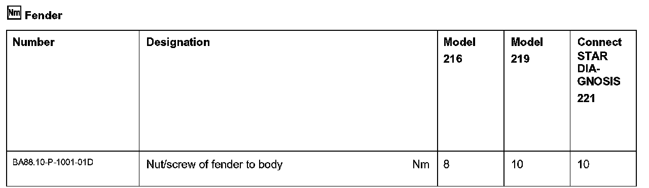 Front Fender: Specifications