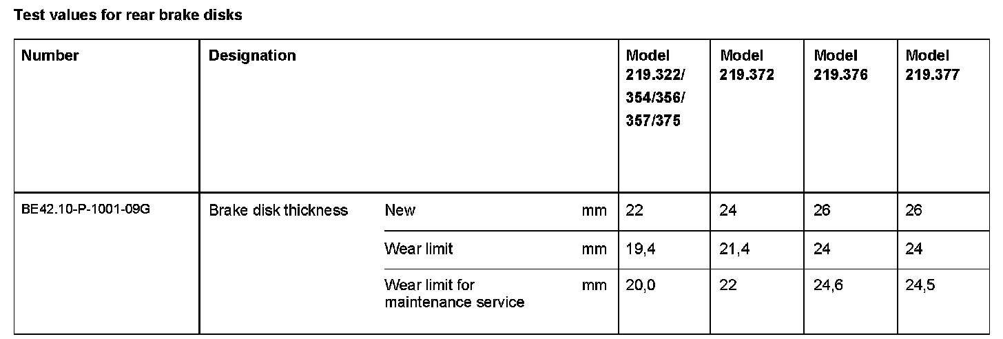 Test Values For Rear Brake Disks: