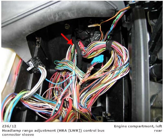 Headlamp Range Adjustment (HRA [LWR]) Control Bus Connector SleeveHeadlamp Range Adjustment (HRA [LWR]) Control Bus Connector Sleeve (View 1):