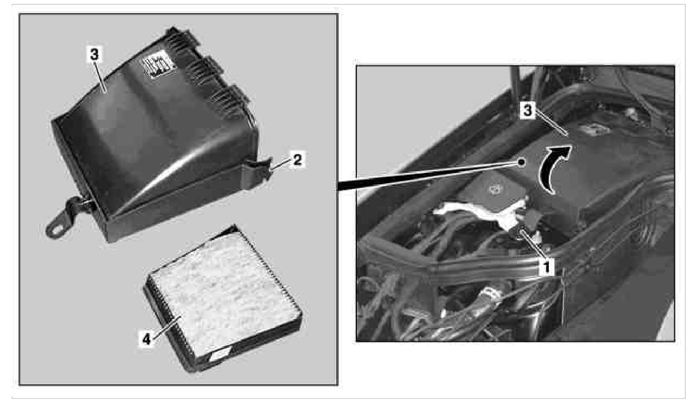 3. Release left and right snap fasteners (2) on combination filter housing (3)