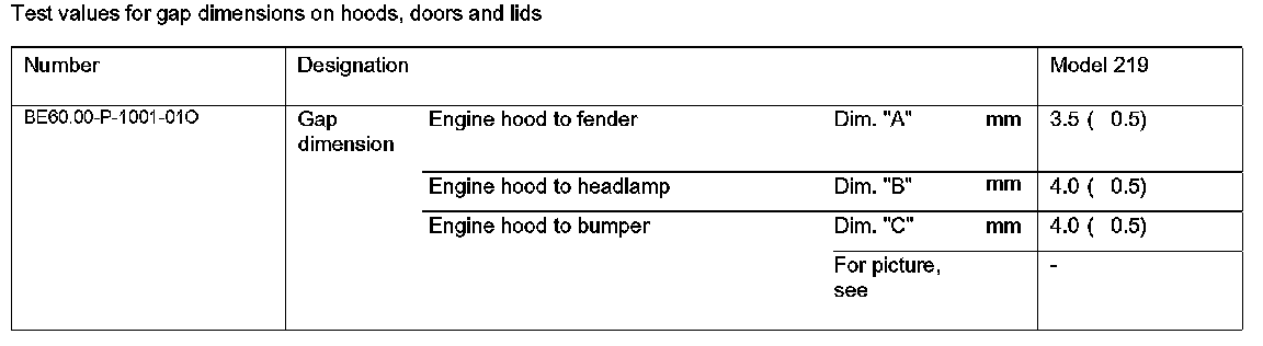 Test Values For Gap Dimensions On Hoods, Doors And Lids: