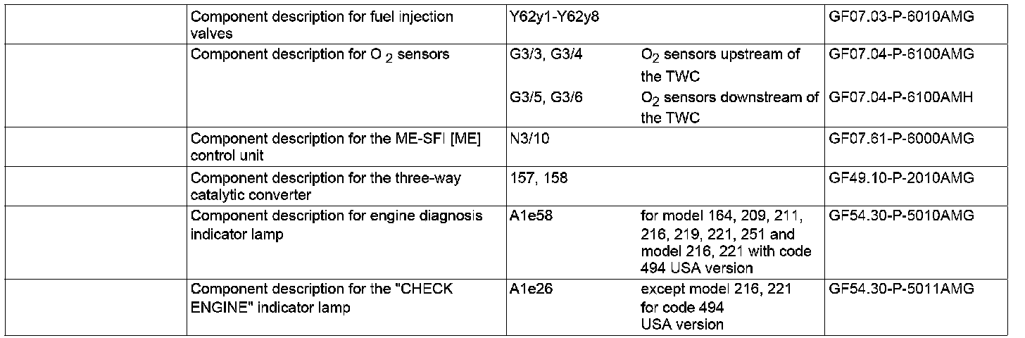 If limit values are exceeded, or if the plausibility check of the O2 sensor signal is negative, a fault is stored in the fault memory and the engine diagnosis indicator lamp or for CHECK ENGINE indicator lamp lights up. The stored faults can be read out and erased with the STAR DIAGNOSIS.