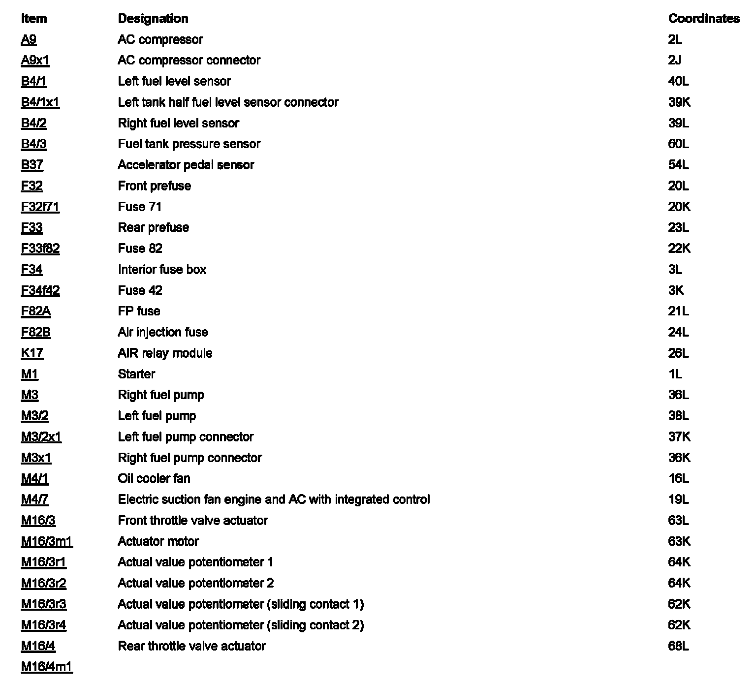 Component Locations: Component Location photographs can be found via their component names at the vehicle level. Component Locations