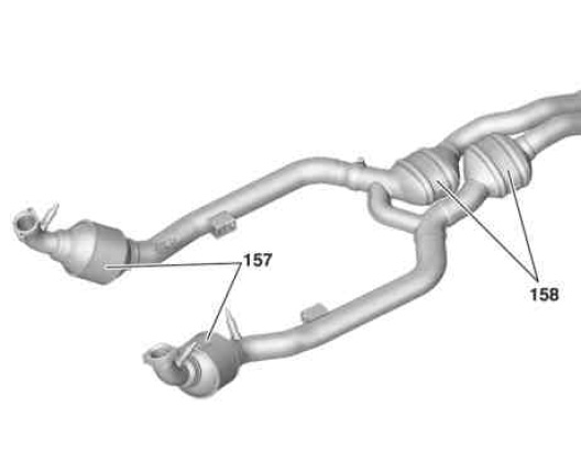 The O2 sensors on the left or right downstream of TWC (G3/5, G3/6) are located on the side on the firewall catalytic converters and jut into the space between both monoliths.