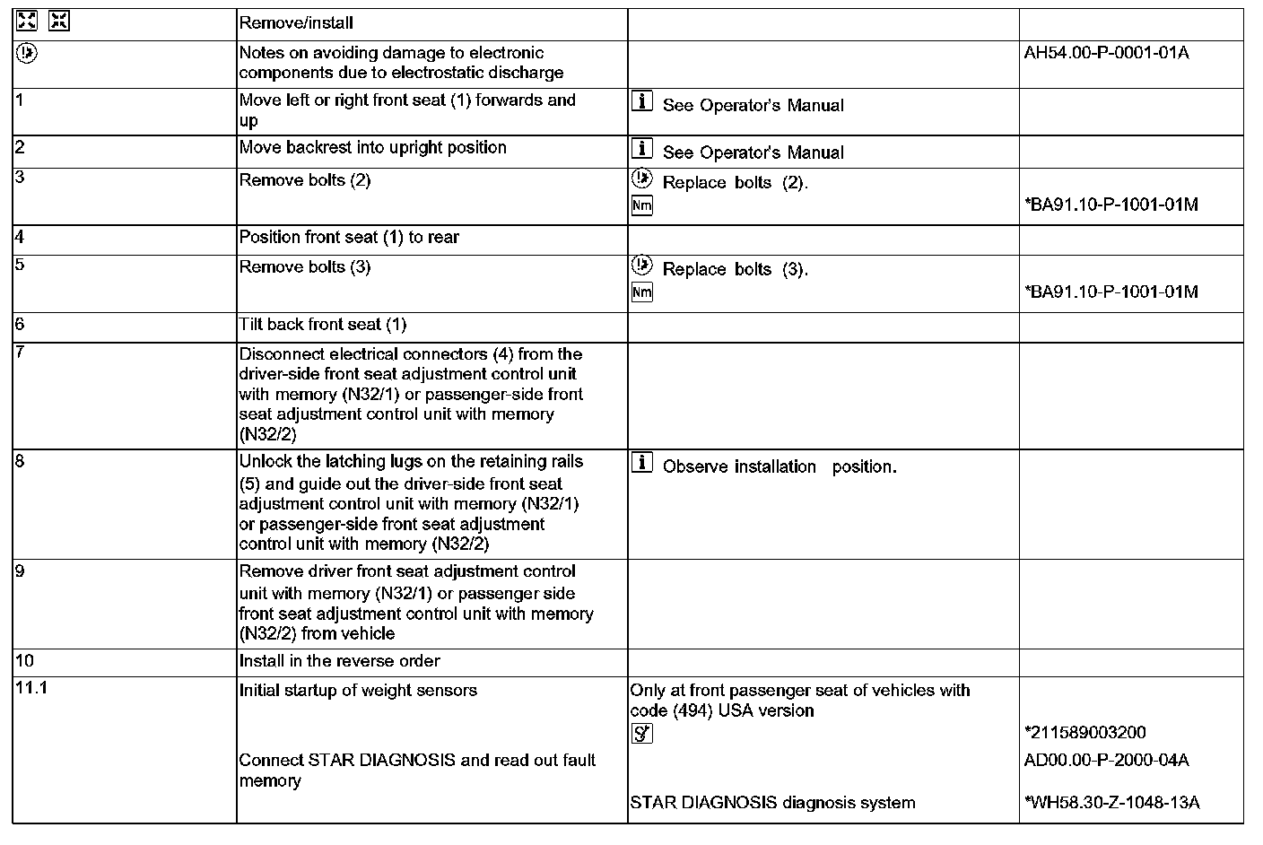 AR91.29-P-0008TX Remove/Install Seat Adjustment Control Unit