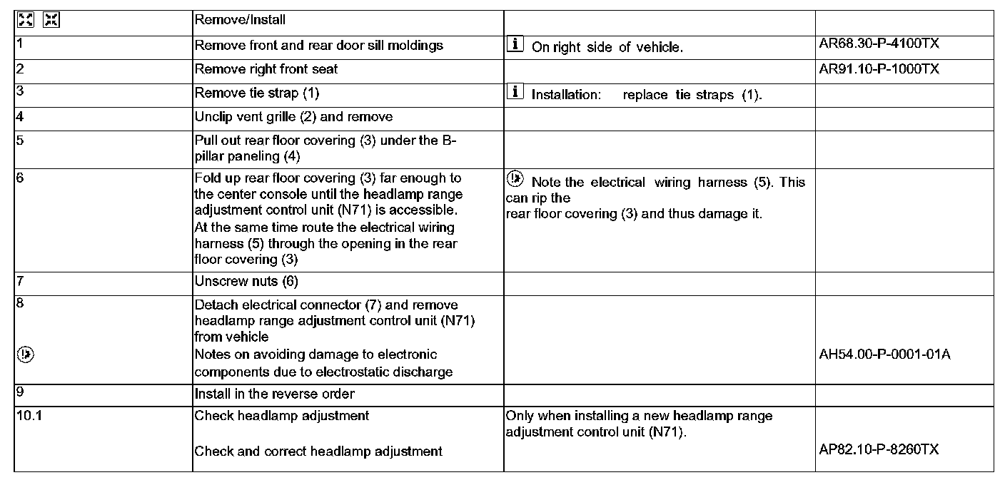 AR82.10-P-4081TX Remove/Install Headlight Beam Adjustment Control Unit