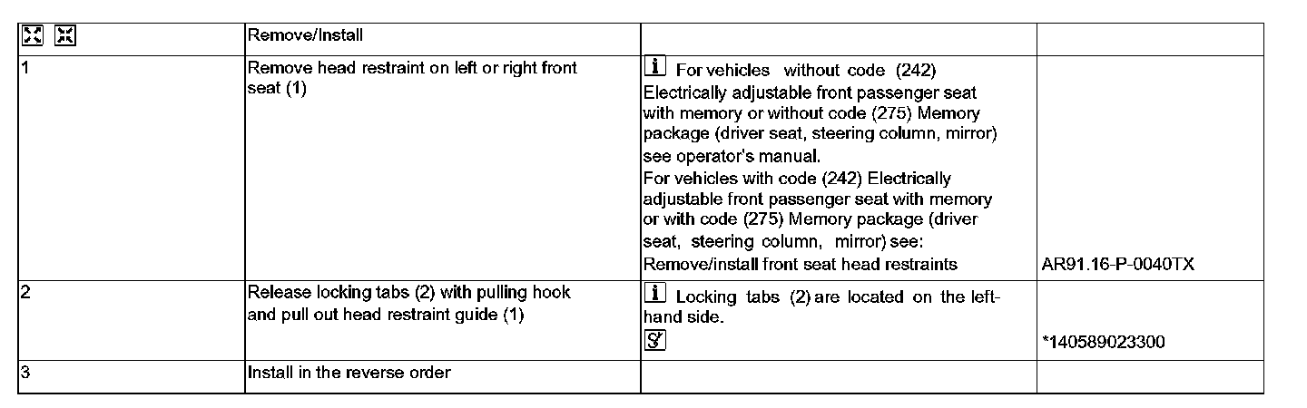 AR91.16-P-0050TX Remove And Install Headrest Guide On Front Seat