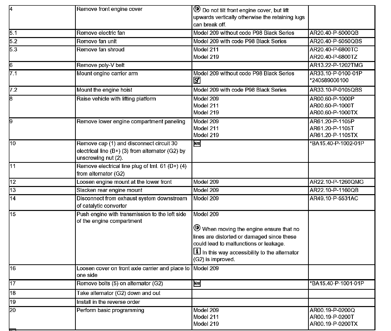 Remove/install Steps 4-20: