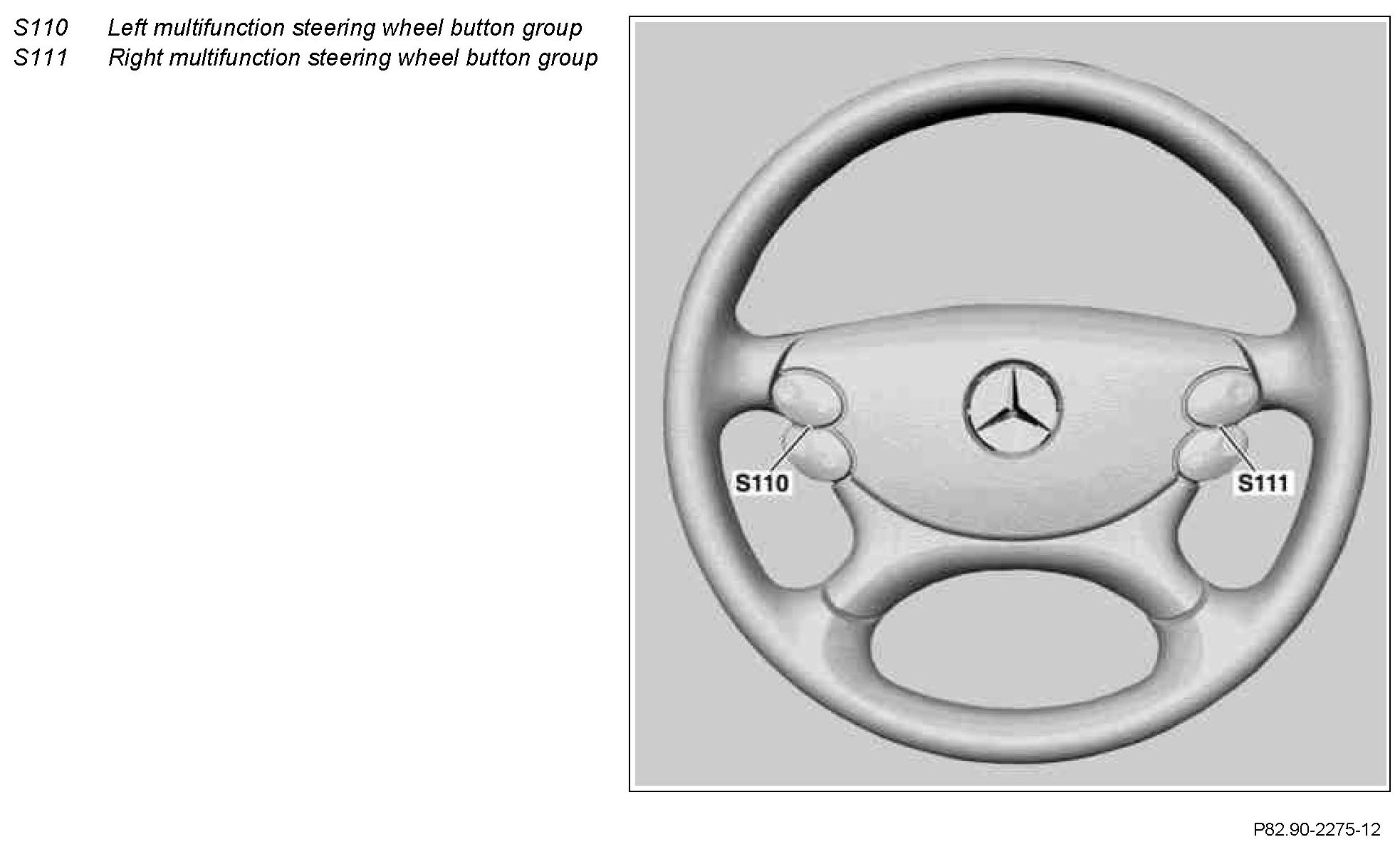 The right-hand button group for the multifunction steering wheel (S111) contains the button for accepting and terminating a telephone call (S111s3), and the + and - buttons, which are used to set specific functions and for the volume control (S111s1). A telephone call can be accepted or terminated using the accept/ terminate phone call button (S111s3).
