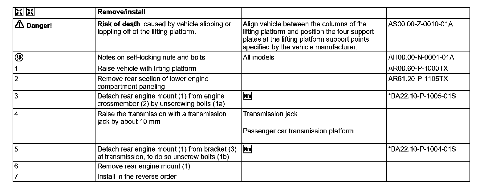 AR22.10-P-1160TX Remove/install rear engine mount