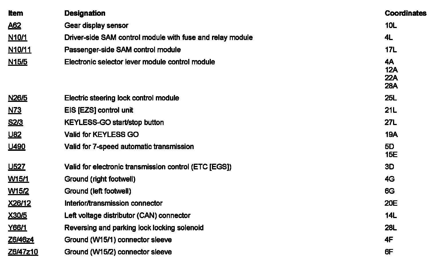 Component Locations: Component Location photographs can be found via their component names at the vehicle level. Component Locations