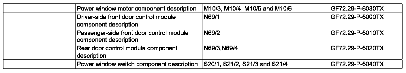 ^ Driver-side power window switch group (S20/1) or power window switch (S21/2, S21/3 or S21/4) not actuated