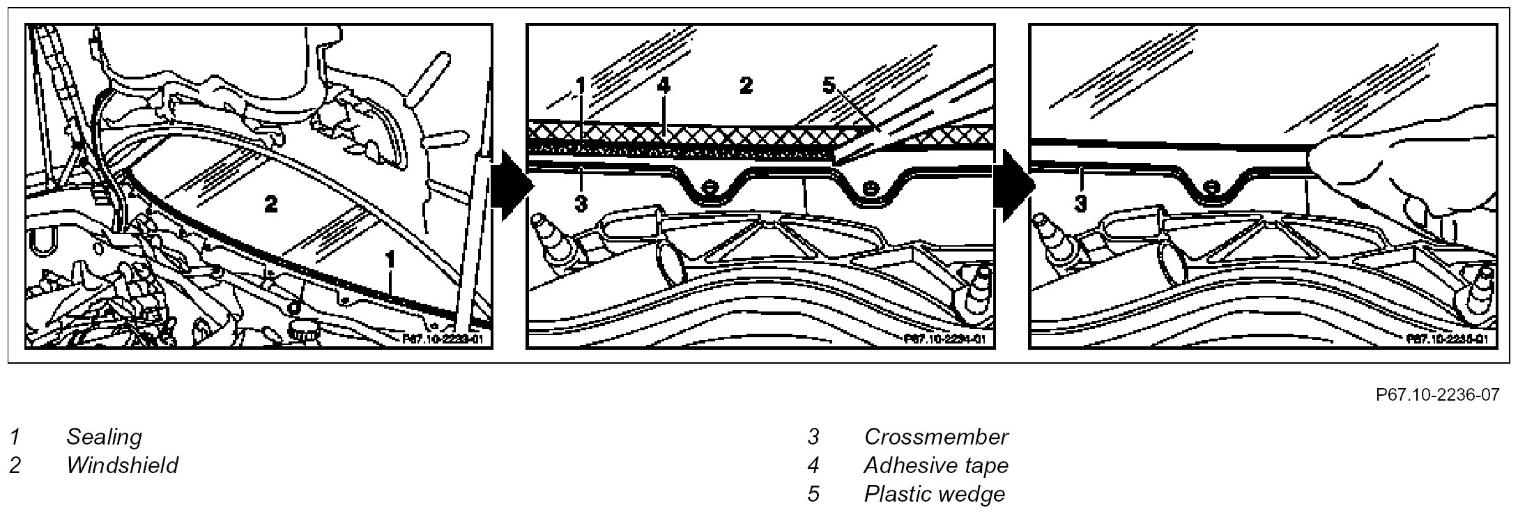 SM67.10-P-0003A Check Installation Position Of Sealing On Crossmember Under The Windshield - Model 211.### ## up to 767502
