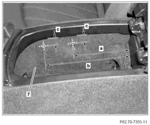 The drilling depth must not exceed a maximum of 8 mm, as otherwise the center console (7) or the front passenger seat may be damaged.
