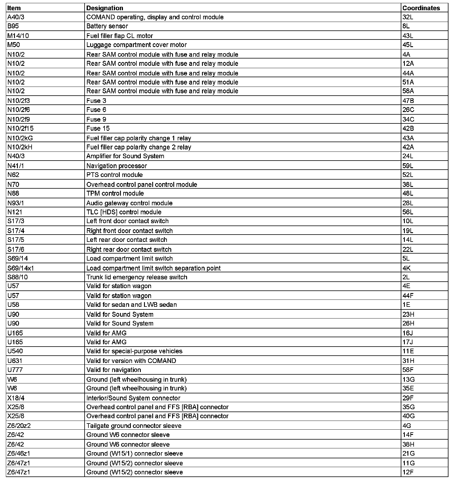 Component Description/Coordinates, A40/3 To Z6/47z1: