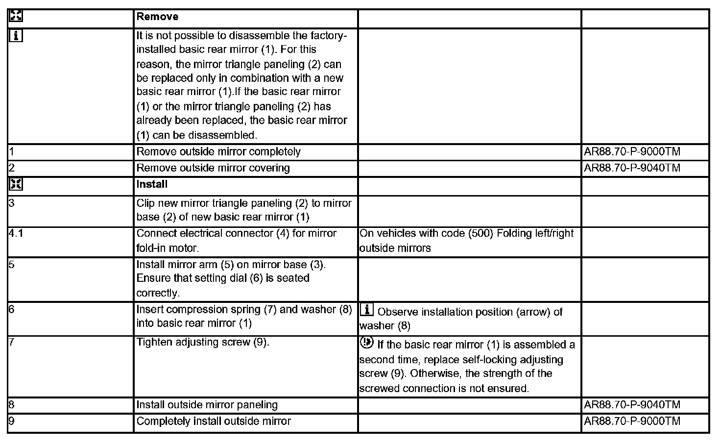 AR88.70-P-9080TM Remove/Install Paneling on Mirror Triangle