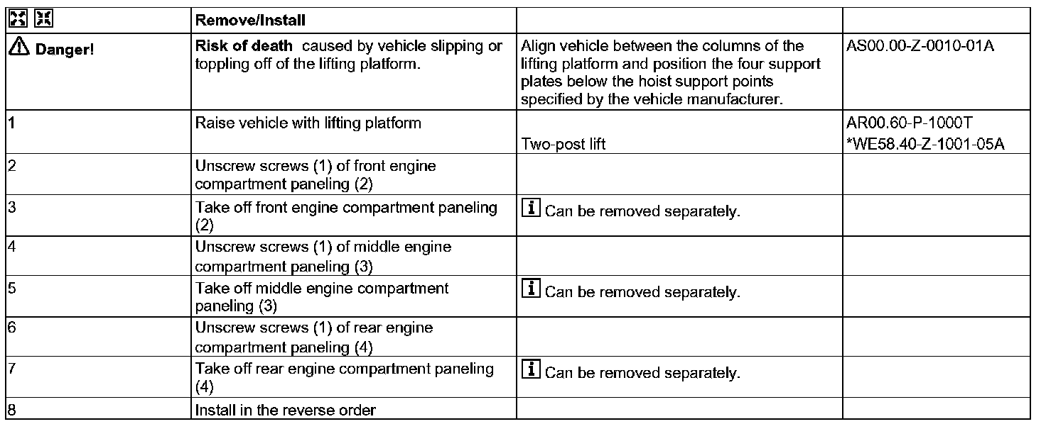 AR61.20-P-1105T Detach/Attach Lower Engine Compartment Paneling
