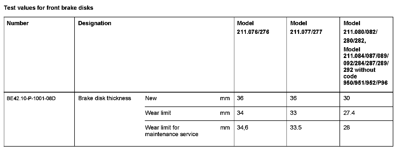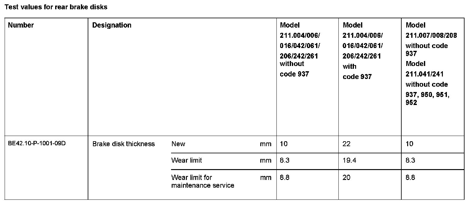 Test Values For Rear Brake Disks: