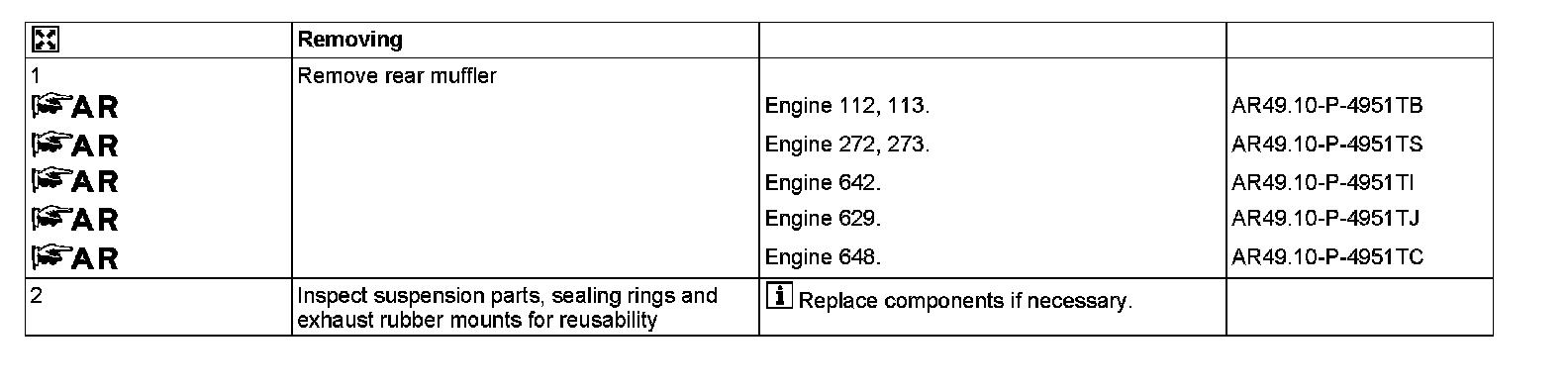 (1) and right (2) do no longer exist. They are replaced by the supplied, reinforced exhaust rubber mounts.
