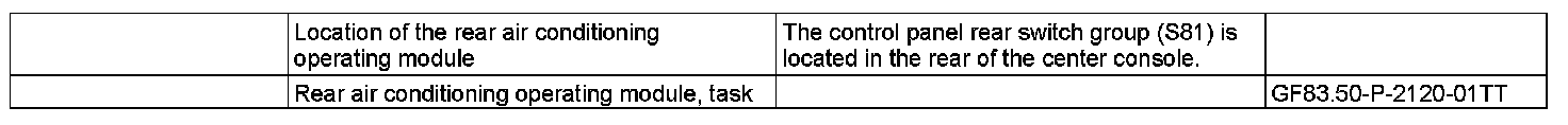 GF83.50-P-2120TT Operating Module Rear Air Conditioning Location/Task