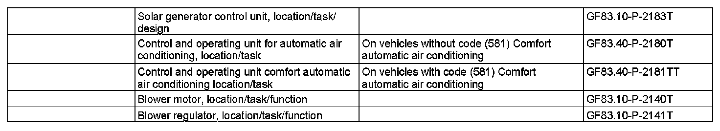 The system comprises the solar cells (G6), the solar generator control unit (N34/1), the AAC [KLA] control and operating unit (N22) (in vehicles without code (581) Comfort automatic air conditioning) or the comfort AAC [KLA] control and operating unit (N22/7) (in vehicles with code (581) Comfort automatic air conditioning) and the blower regulator (A32n1), which actuates the blower motor (A32m1).