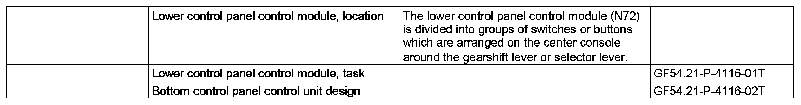 GF54.21-P-4116T Lower Control Panel Control Module, Location / Task / Design