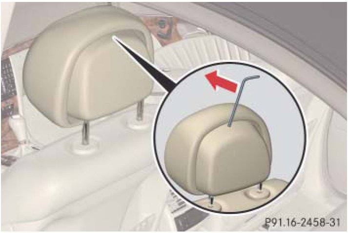 Note: For your convenience, we recommend that you have this work carried out by an authorized Mercedes-Benz Center. You will find the reset tool for manually operating the head restraints in the Mercedes-Benz vehicle literature pouch.