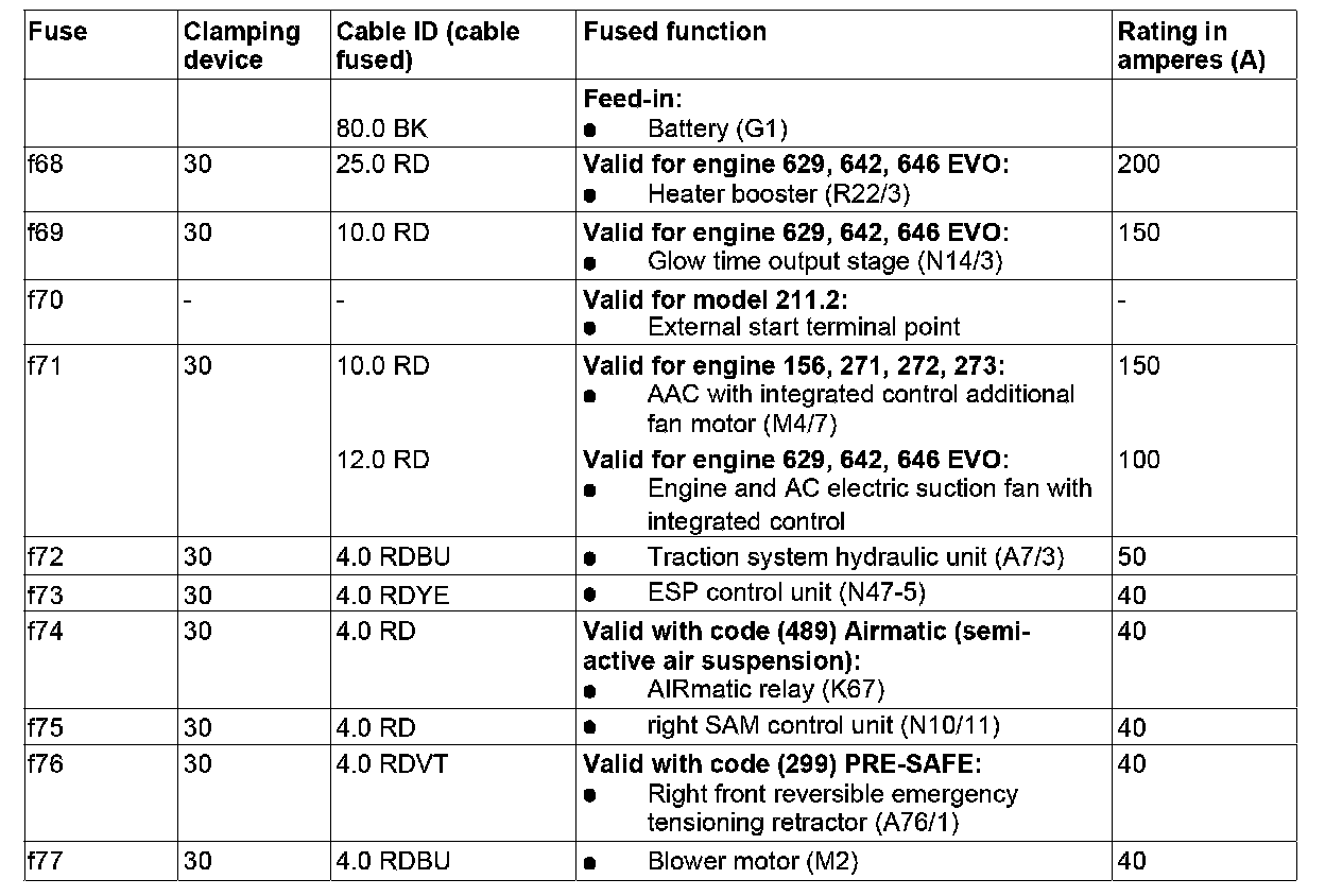 GF54.15-P-1256-07TM Fuse Assignment Of Front Prefuse Box