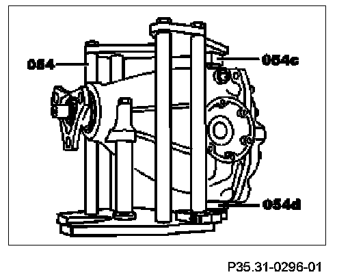 1 Mount rear axle center assembly in assembly stand (054) and clamp securely.