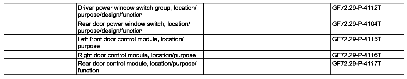 With the rear side window child safety lock switch (S20/1s5) located in the driver power widow switch group (S20/1) it is possible to disable the function of the left rear power window switch (S21/3) and right rear power window switch (S21/4) (child protection) located in the rear doors.